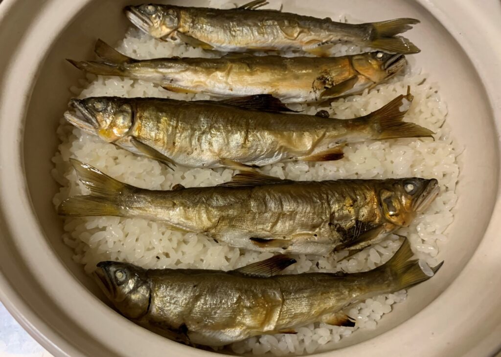 先日、東京の旅行業者のT氏と鮎釣りに河津川へ。 なんと夜中上流で雨が降ったのか、川に着くとコーヒー牛乳色。 急遽山越えして、下田の稲生沢川に行きました。 昼過ぎまでに、18cm級がそこそこに釣れました。 今年初めての鮎ご飯、人参・油揚げ等を入れる... -