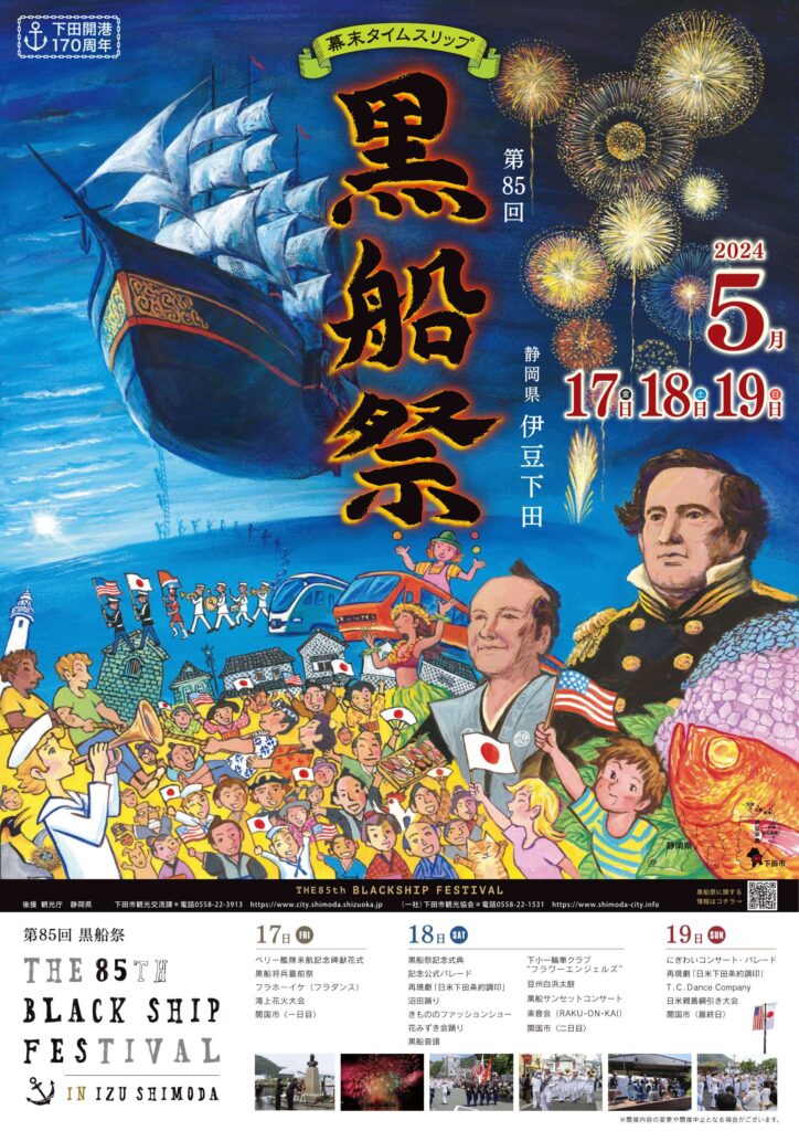皆さん、こんにちは!今日は 下田市での「黒船祭り」についてお話ししましょう。 この祭りは、ペリー提督が率いる黒船が来航したことを記念して、昭和9年 (1934年)から始まりました。 今年は特別な年で、下田開港170周年を記念して第85回黒船祭りが開催さ... -