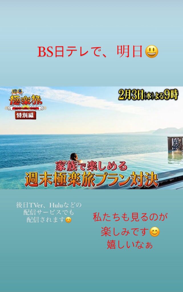 じゃじゃじゃん 明日2021年 2月3日 21時から BS日テレの「週末極楽旅」でいなとり荘が紹介されます。 嬉しいなああ。 こんなご時世なのでリモートで、我らが副支配人の藤城が 奮闘しております( *´艸`) 取材の日に、露天風呂「蒼空」をリモートで自... -