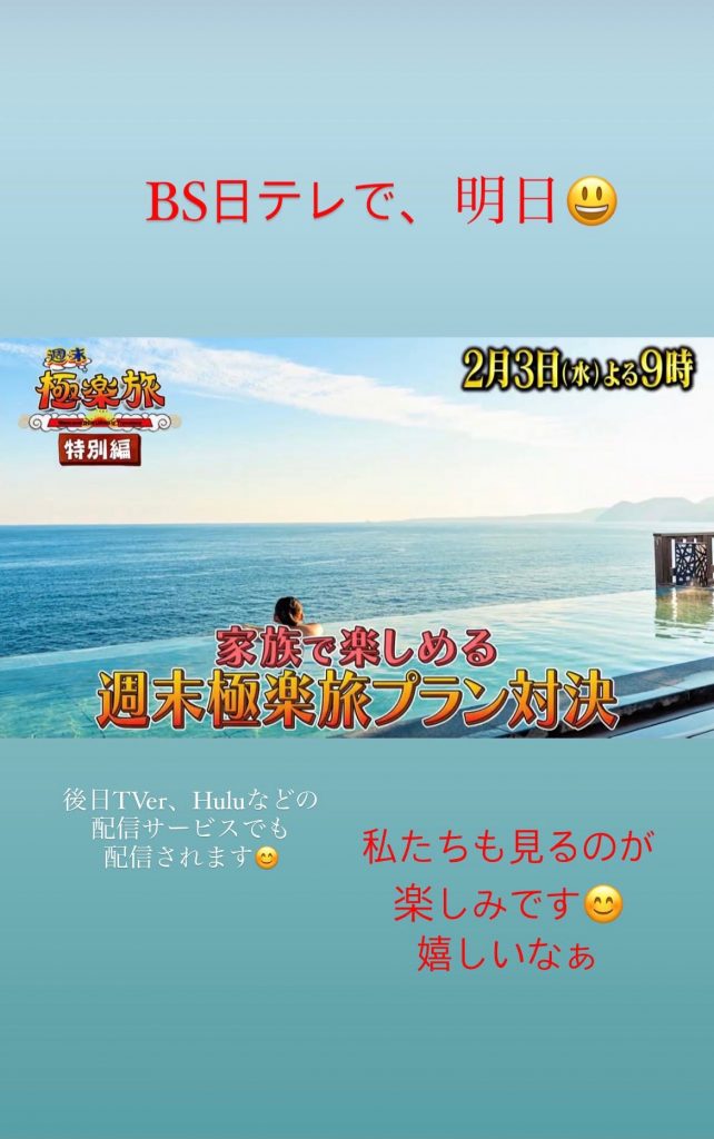 BS日テレの「週末極楽旅」でいなとり荘が紹介されます。