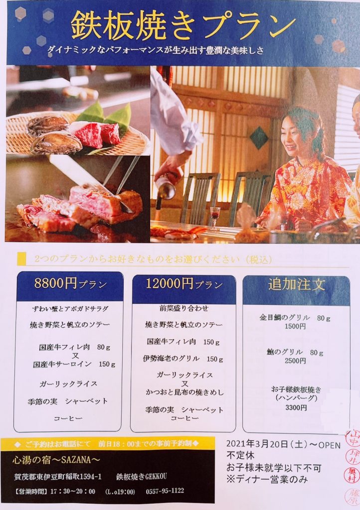 その湯苑さんで、宿泊しなくてもお夕食で鉄板焼きを始めたそうです!