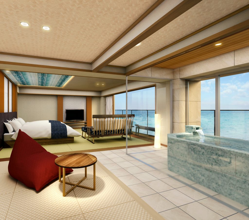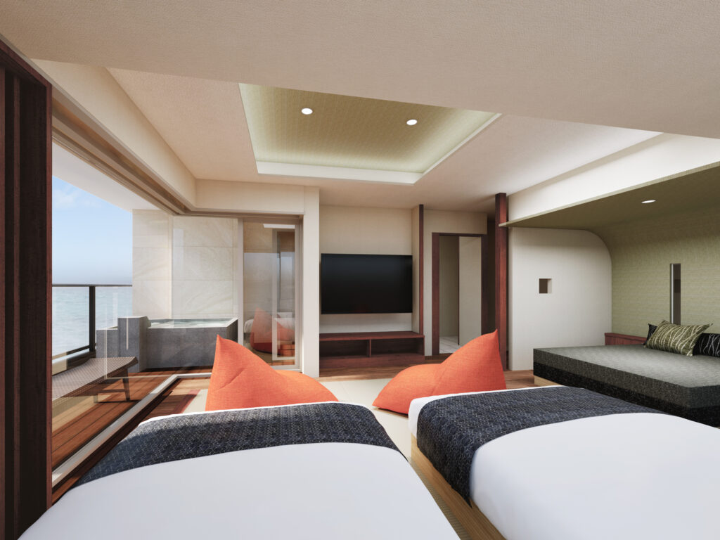 2室は露天風呂付、もう2室は和モダン和洋室。