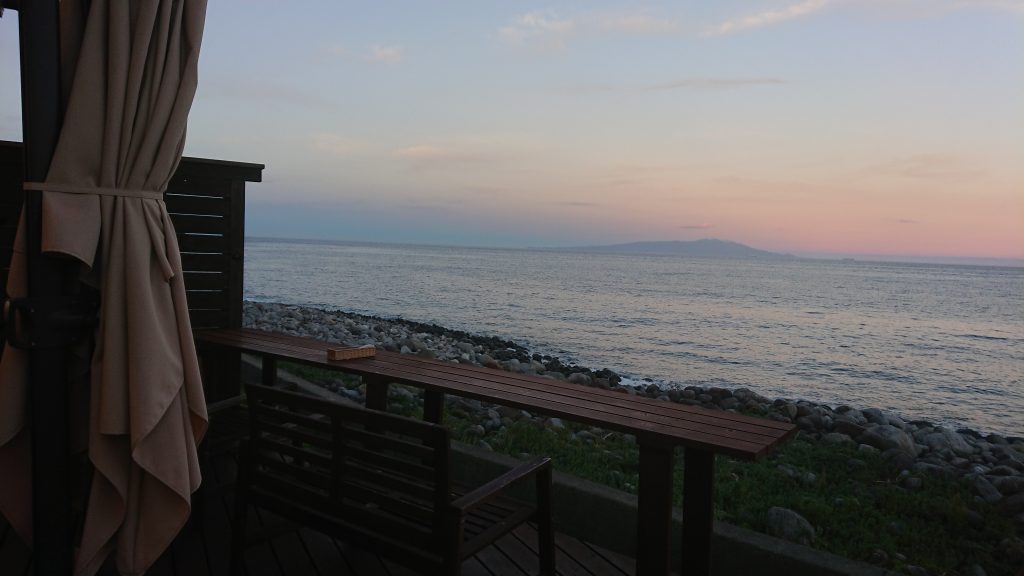 こちらのお店、オーシャンビューになっており、伊豆大島が眺められるテラス席もあります。