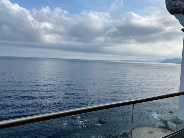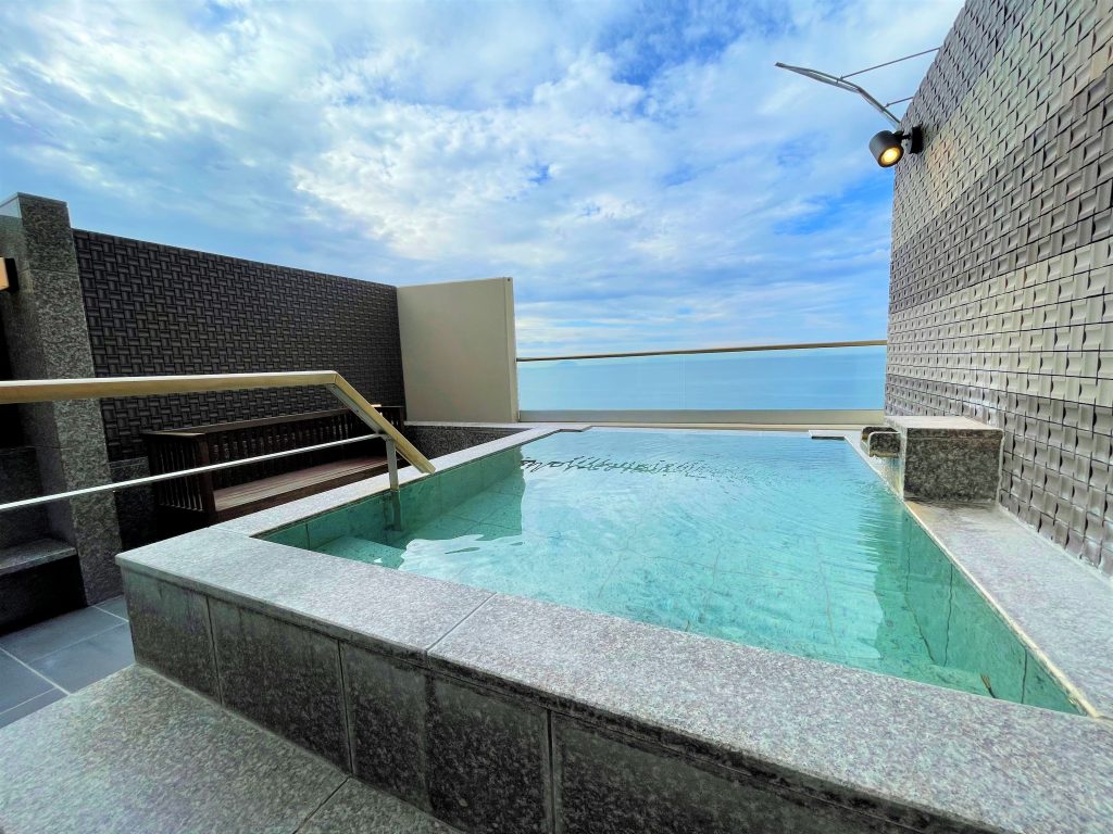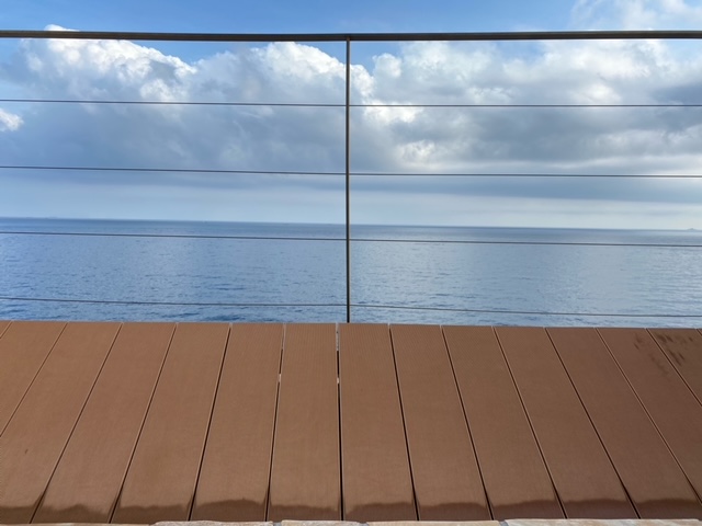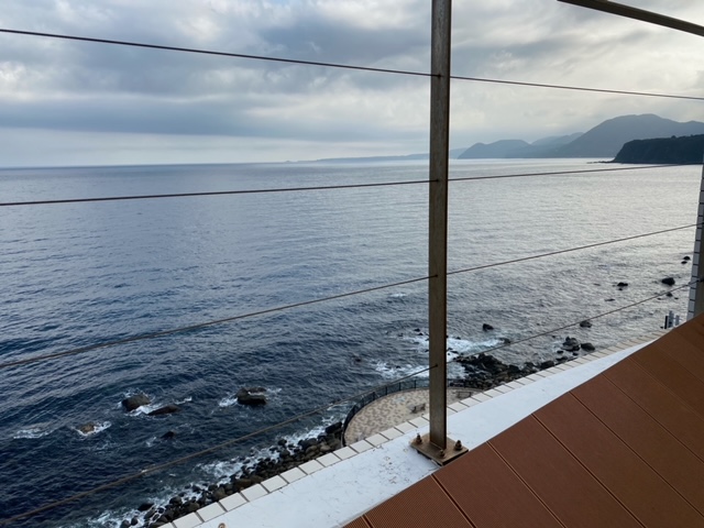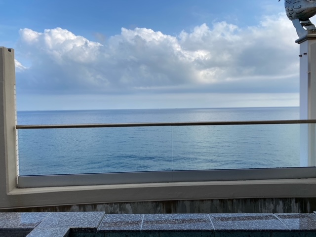 湯舟に浸かった状態で海を見るとこんな感じ。