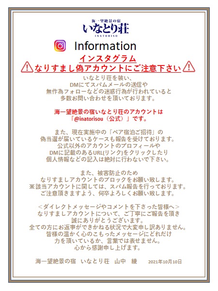 【注意】インスタグラムなりすましアカウントにご注意下さい 2025 9/22 新着情報 2021年10月10日2025年9月22日 新着情報 URLをコピーしました! 漁村の外灯 11月~2月まで稲取の花火日めじろ押し! 関連記事 【お知らせ】9/30 HP一時メンテナンスについて 2025年9月30日 もう予約が続々と!人気の河津桜まつり 2025年9月30日 東伊豆の秋冬イベントガイド 9月~12月 2025年9月30日 限定200本!ついにデビューしました 2025年9月22日 未来へつなぐ、二千年の釜炊きごはん 2025年9月22日 限定200本!ここでしか飲めない冷酒 2025年9月22日 【初夏の風物詩】約15万株の彩りに包まれて。下田あじさい祭り2025へ行こう! 2025年9月22日 金目鯛・海・花火・冒険!“ぜんぶ盛り”の夏休みがいなとり荘にある! 2025年9月22日