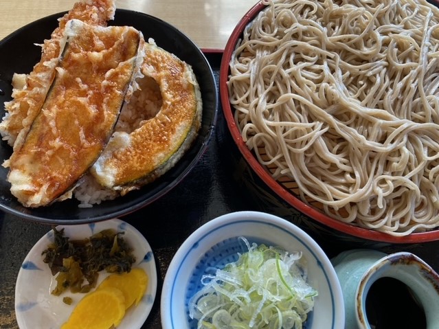 ある日のランチ、天丼ととろろ蕎麦のセット。
