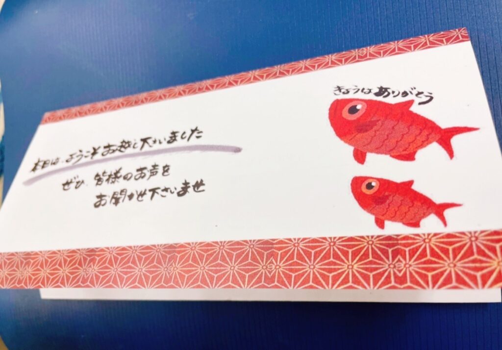 たまに「何か書いてね」とフロントでお預かりする事があります。