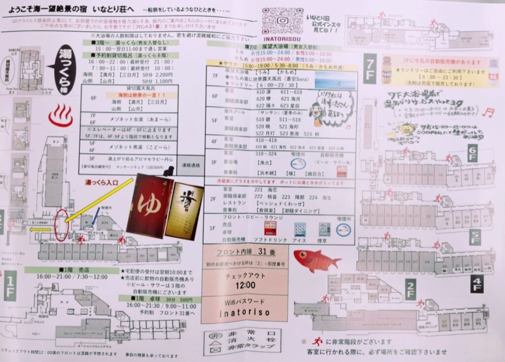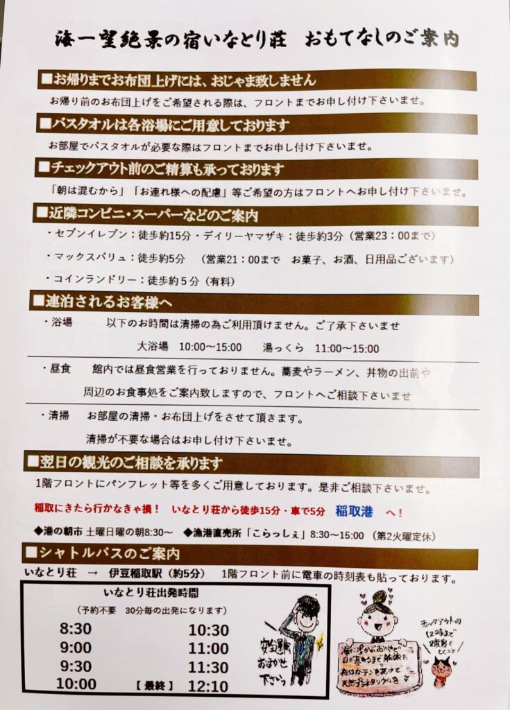 こちらは、お客様にお渡ししている館内のご案内。