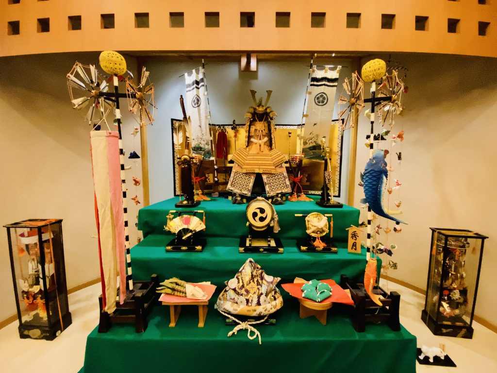 いなとり荘のロビーも、季節の飾りでお雛様→5月人形・端午の節句の飾りに模様替え♪