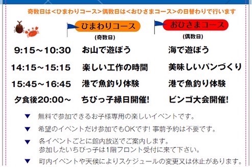 (ただ、お夕食後20時からの「縁日」や「ビンゴ大会」は大人の方も