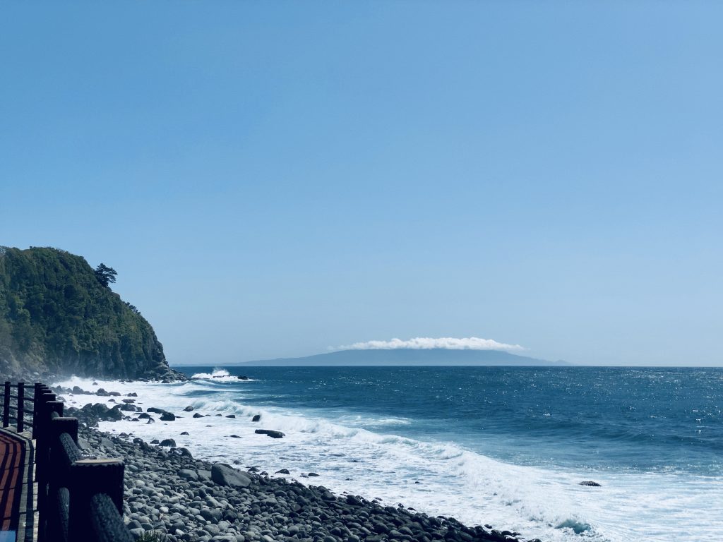 目の当たりにした、この日は雲一つない晴天で、なぜか伊豆大島の上にだけ雲があって…と、