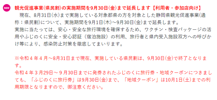 【9/30まで延長!】11県民が対象!しずおかげんきたび