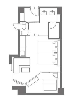 間取り:リビング+露天風呂+シャワーブース+ベッド(シモンズ)+洗面