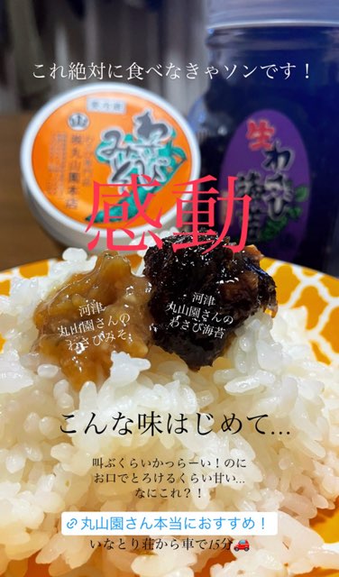 皆様ぜひ河津の丸山園さんのわさびのり、わさびみそ、そしてわさび漬け!