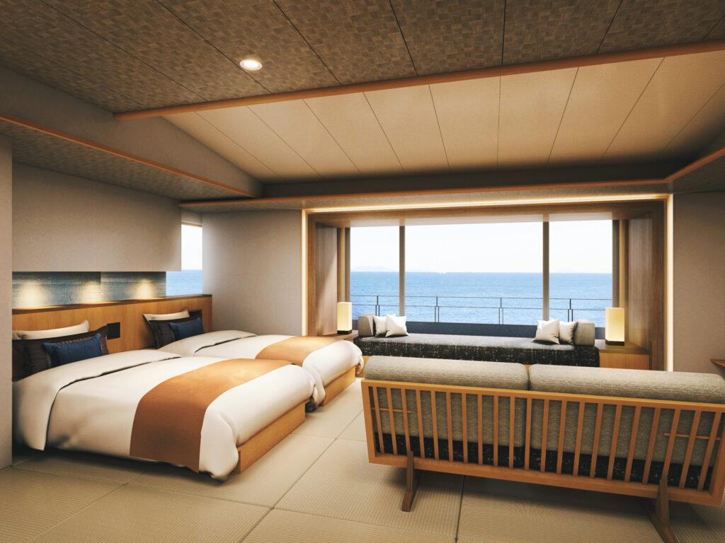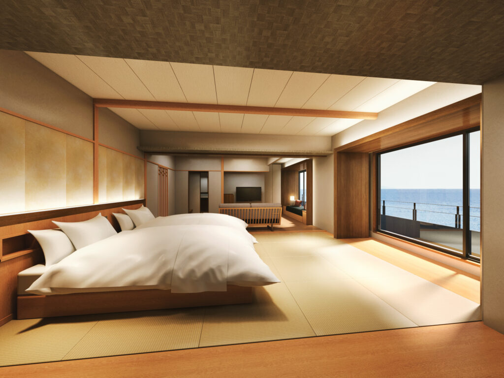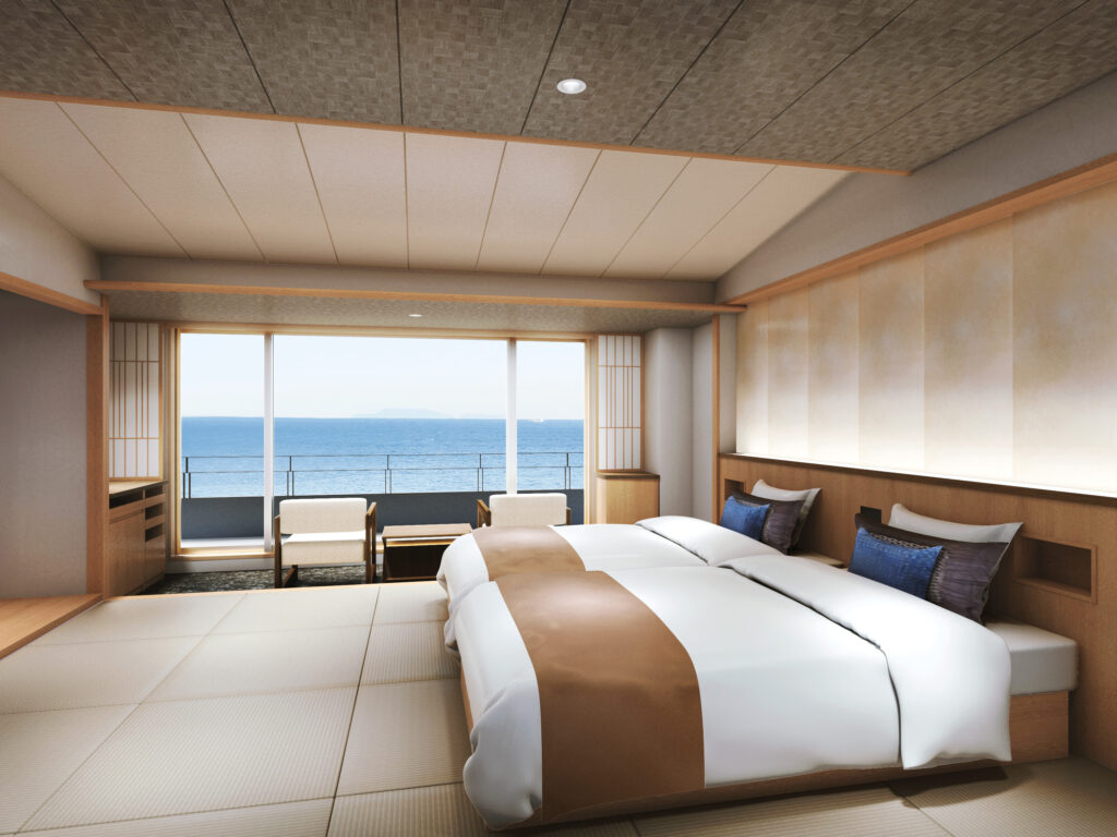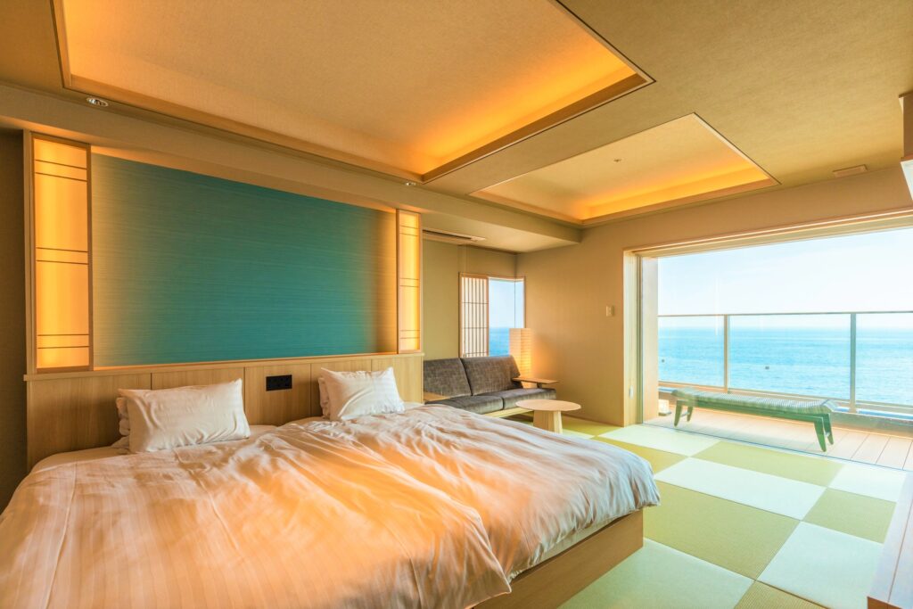 窓が大きいので和室よりも一面の海が広がるコスパ最高のお部屋。