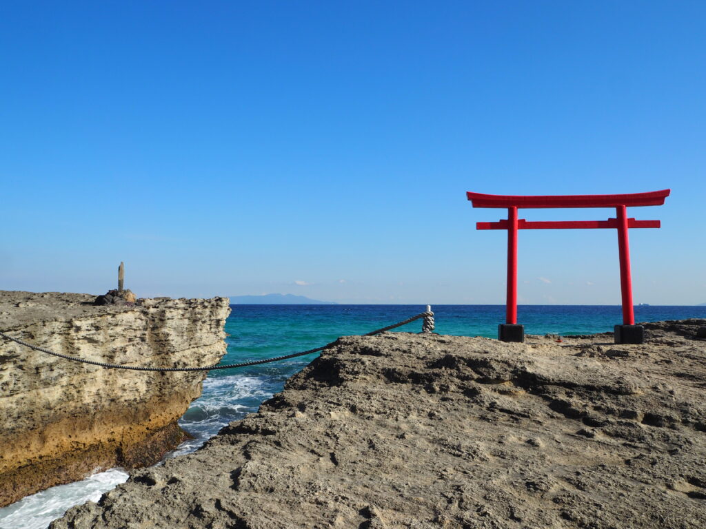 海岸沿いにある、とても珍しい神社です。