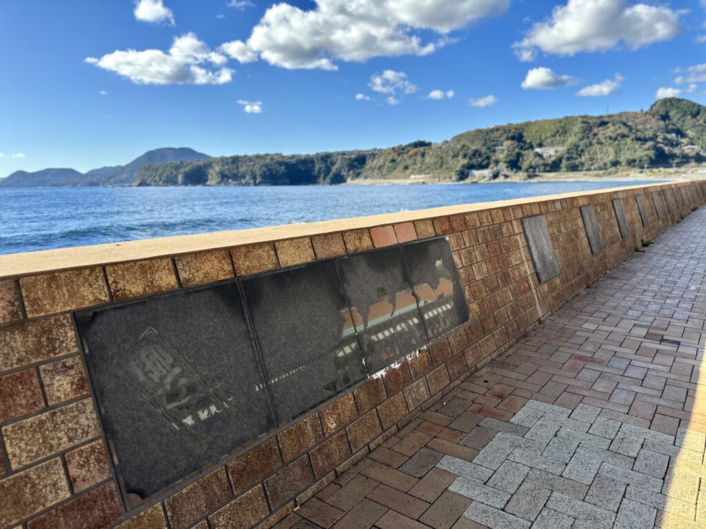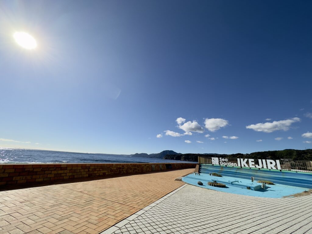 少し歩くと、夏は海水浴場プールになる池尻海岸の磯Sea Garden IKEJIRIの看板が見えてきます。