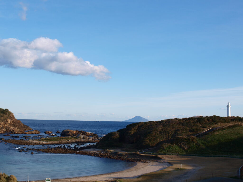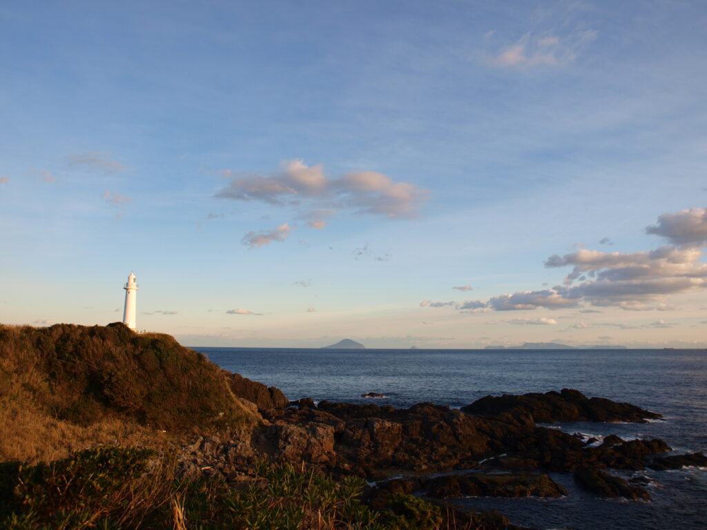 岬には灯台も建っていて、高い所からだと水平線の先に伊豆七島も望めます。
