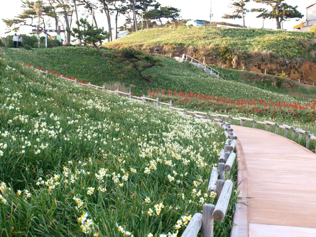 海岸に面した所に遊歩道があるので、青い海と青い空、そして水仙…と、まったりと散策できます(*^^*)b