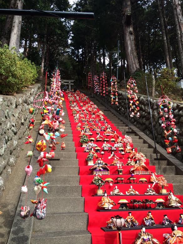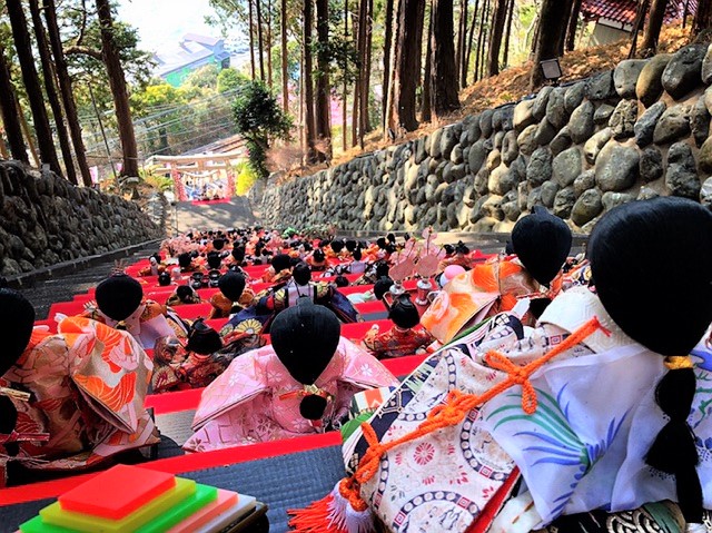 神社の百十八の階段にお雛様とつるし飾りが展示されます。