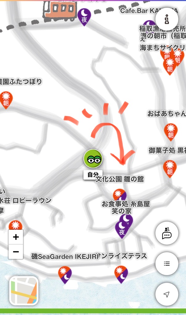 ちょっと拡大して自分のいる場所付近にしてみよう