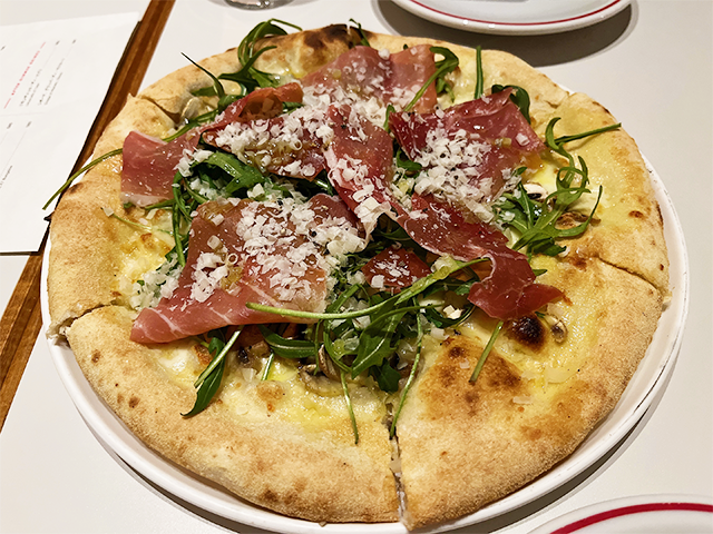 モッツァレラチーズと生ハムの相性がぴったりなのと、なによりピザ生地が美味しくて