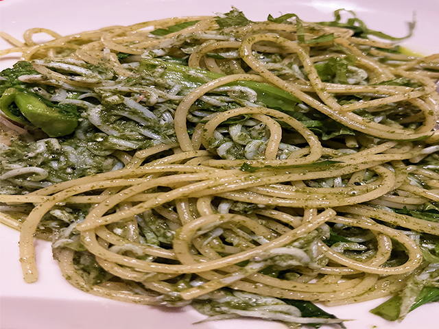 釜揚げしらすのシソベーゼ、スパゲッティです!