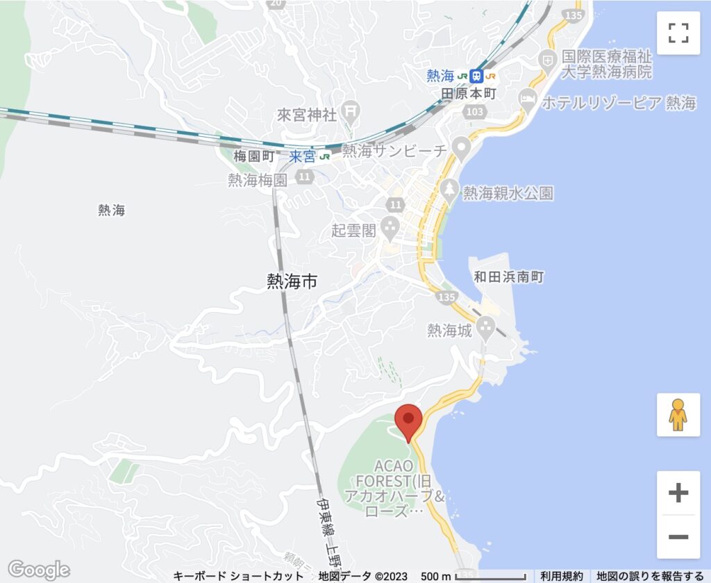 熱海駅より東海バス:6番線 網代行き乗車、「アカオ フォレスト」で下車約15分