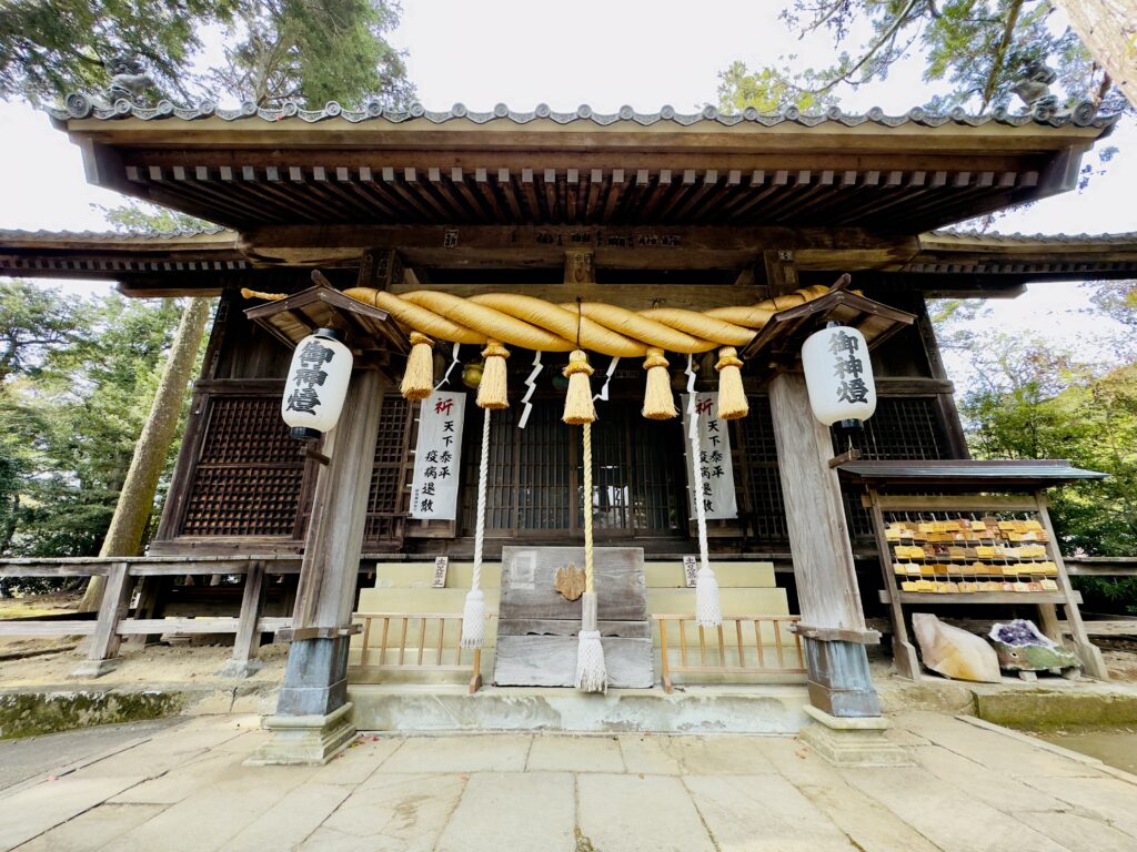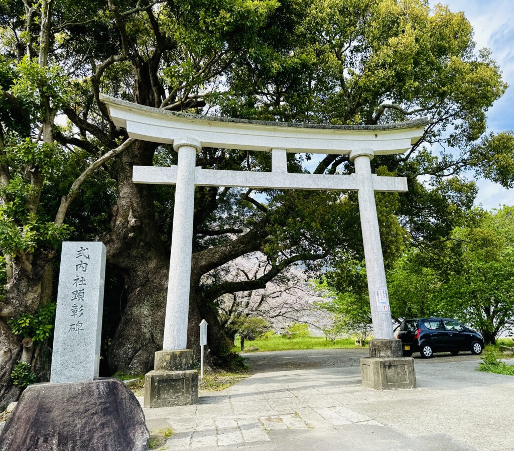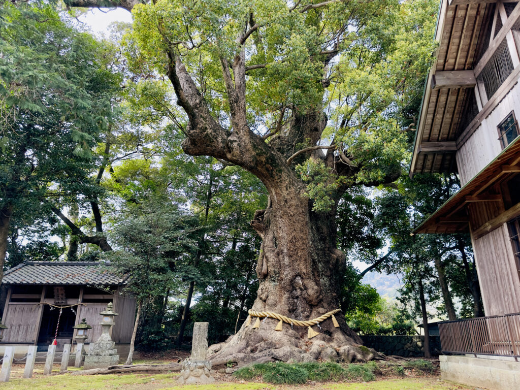 神社の社殿の奥には、樹齢約2,000年といわれている大楠が祀られています。