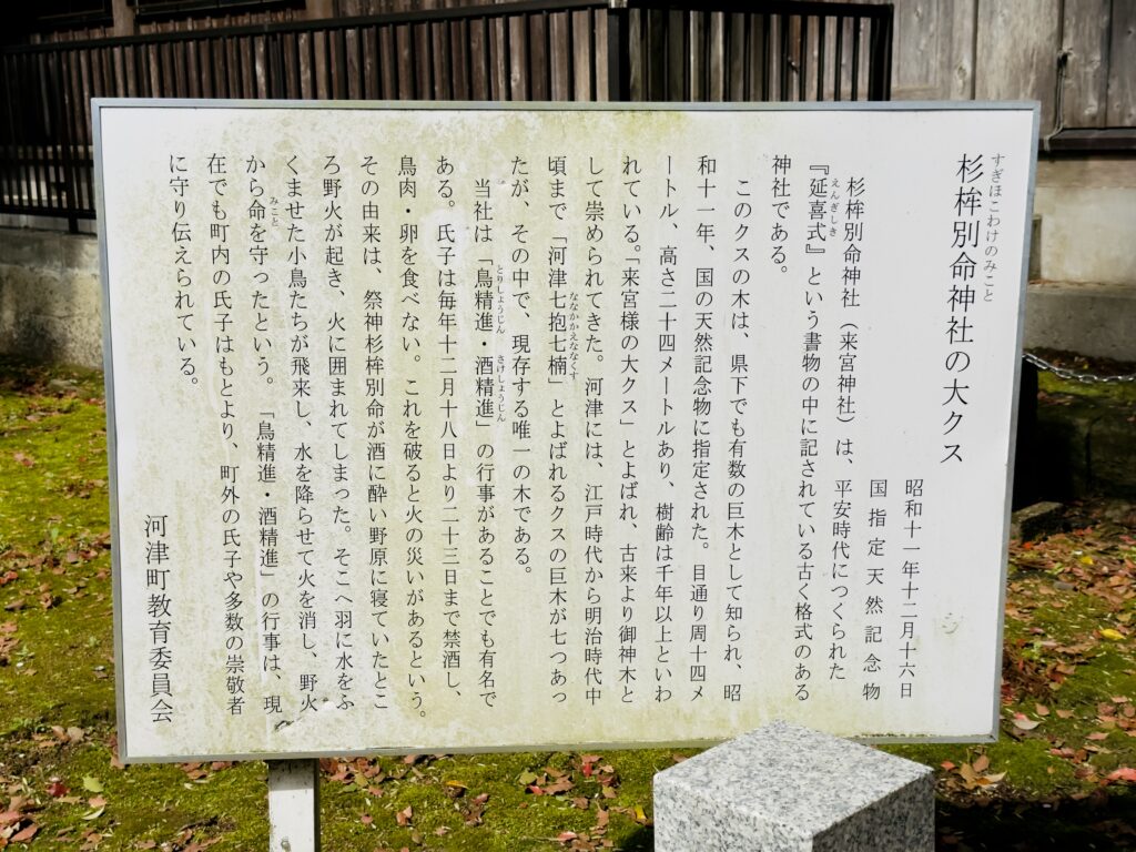杉桙別命神社(すぎほこわけのみことじんじゃ)は、平安時代につくられた「延喜式(えんぎしき)」という書物の中に記されている、古く歴史ある神社です。