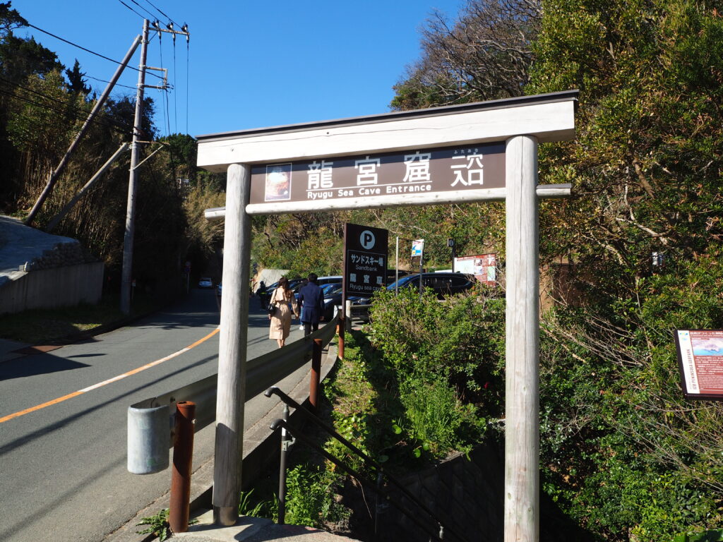 しばらく進むと「龍宮窟」と書かれた看板が見えてきます。