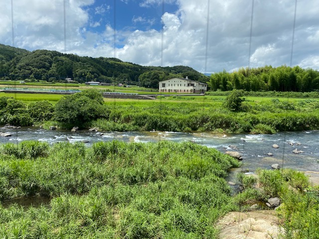 窓の外を流れる狩野川を眺めながら、