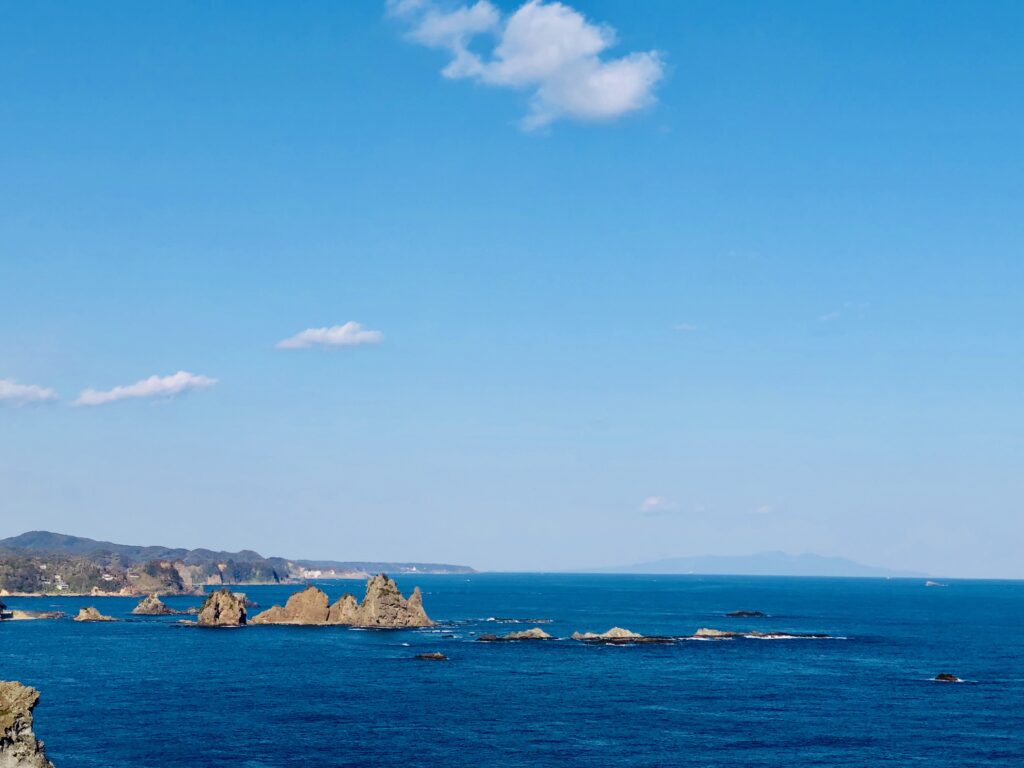 (↑↑ 上の写真は石廊崎にある、石室神社付近からの海景色です。)