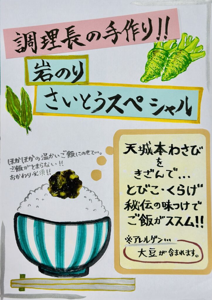 天城山の本わさびを細かく刻んで、とびこ・くらげ、岩海苔、秘伝の味付けで作る岩海苔の佃煮♪