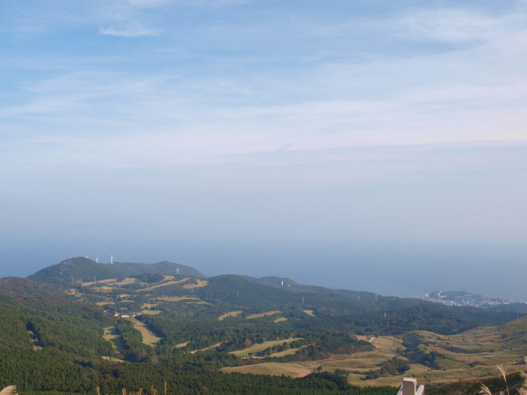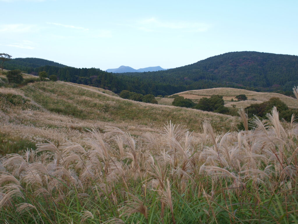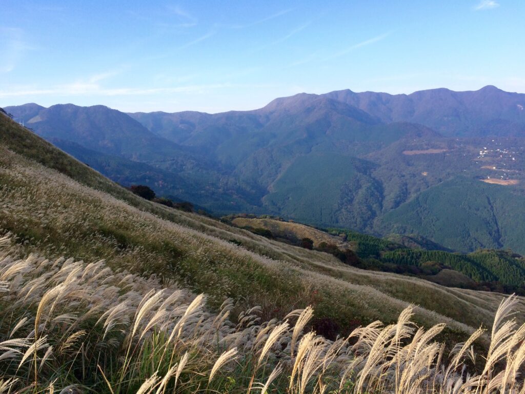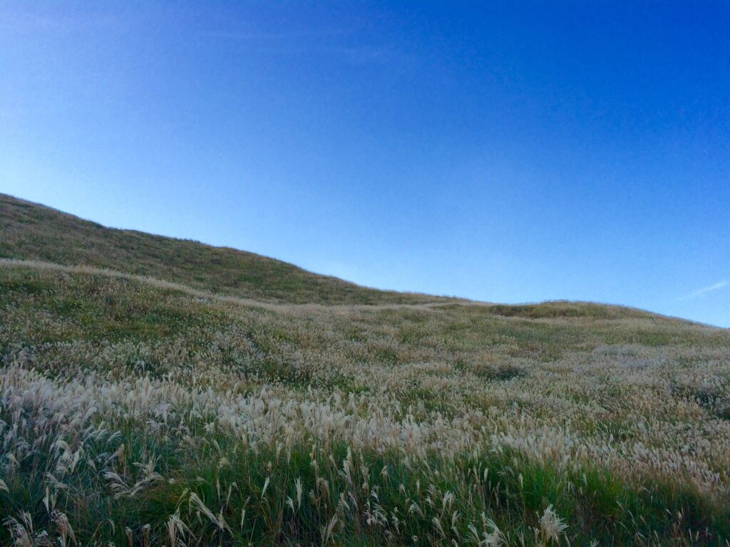 高原の奥には三筋山(山頂標高821M)という山があり、ススキ畑は山頂まで続いています。