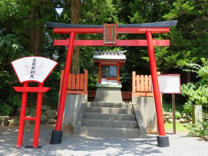 最後に、拝殿の左側にある「縁結神社」にお参りしました。ここでは、見目弁財天が祀られています。見目弁財天は、縁結びや子授けや夫婦円満の女神様です。三嶋大明神の随神でもあり、伊古奈比咩命と三嶋大明神の結婚を取り持ったと言われています。ここでは、「縁結び特別祈願」ができます。お守り付きで1000円です。私も早速申し込みました。お守りはピンク色で可愛らしいですよ。