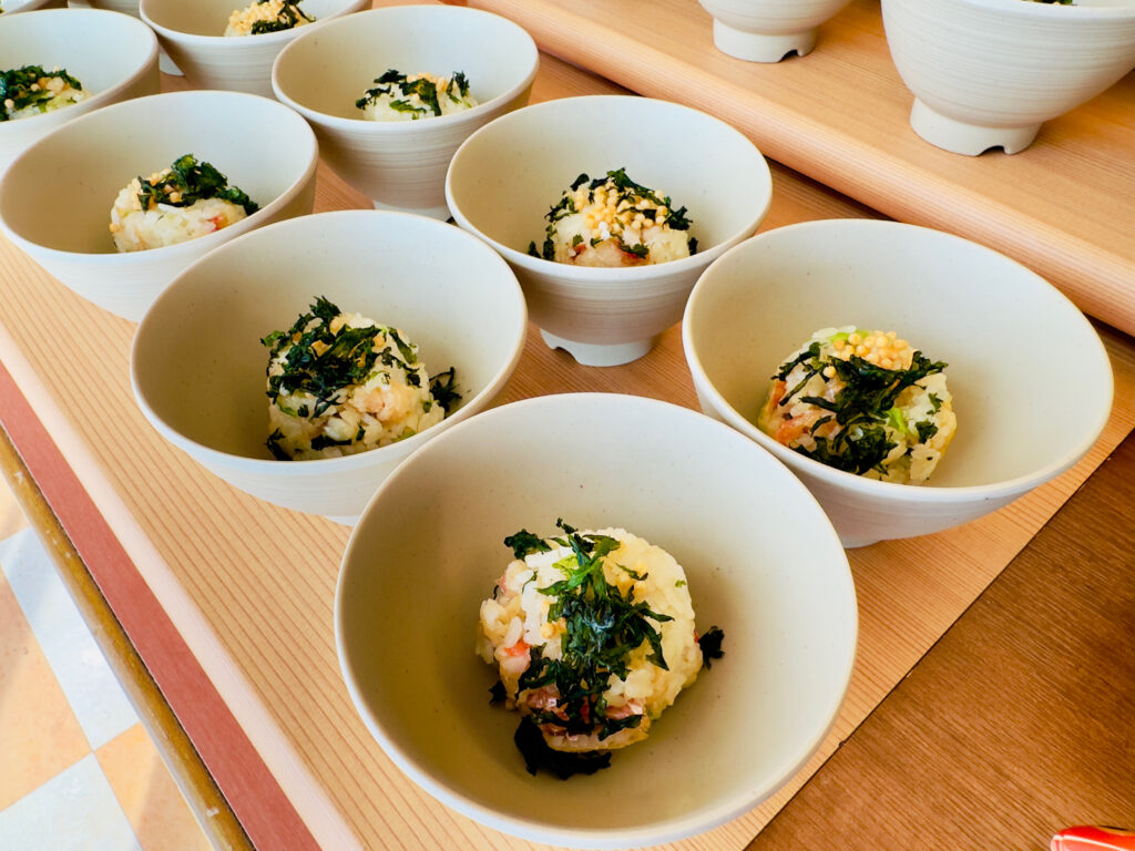 (上の写真のおにぎり茶漬けは、オープン前に撮ったため、出汁をかける前のおにぎり写真です。