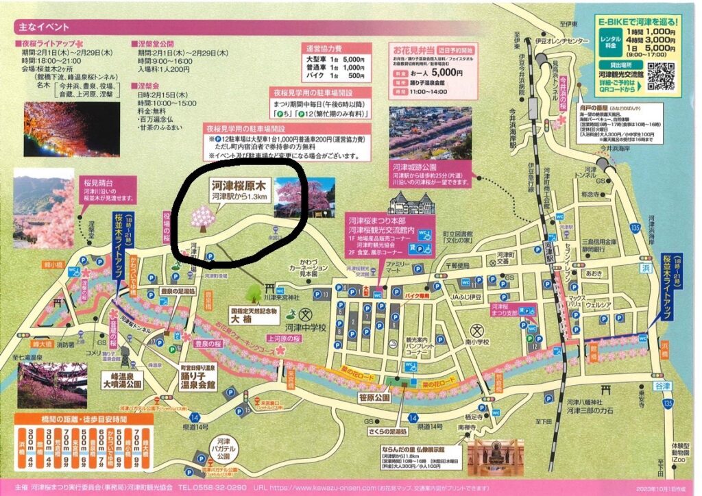 ちなみに、Pは原木桜の右側にピンクで囲ったところ「河津桜まつり本部」。