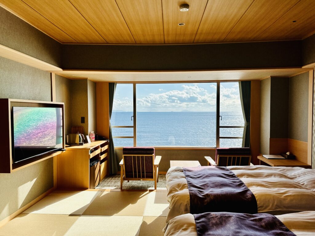 窓辺の椅子に座りながら、目の前に広がる大海原と遠くには伊豆七島、ゆっくりと景色を眺める…素敵なヒトトキですね(*´▽`*)♪
