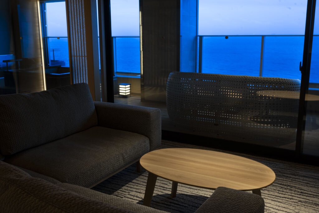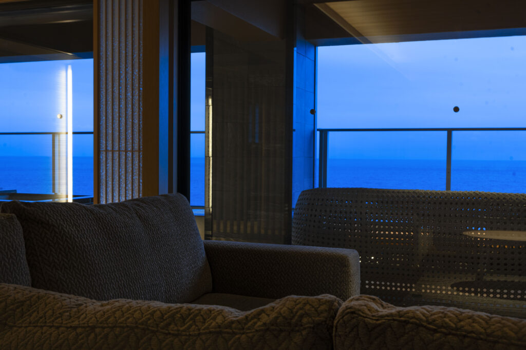 この大きなソファに座って海を見ながら・・・