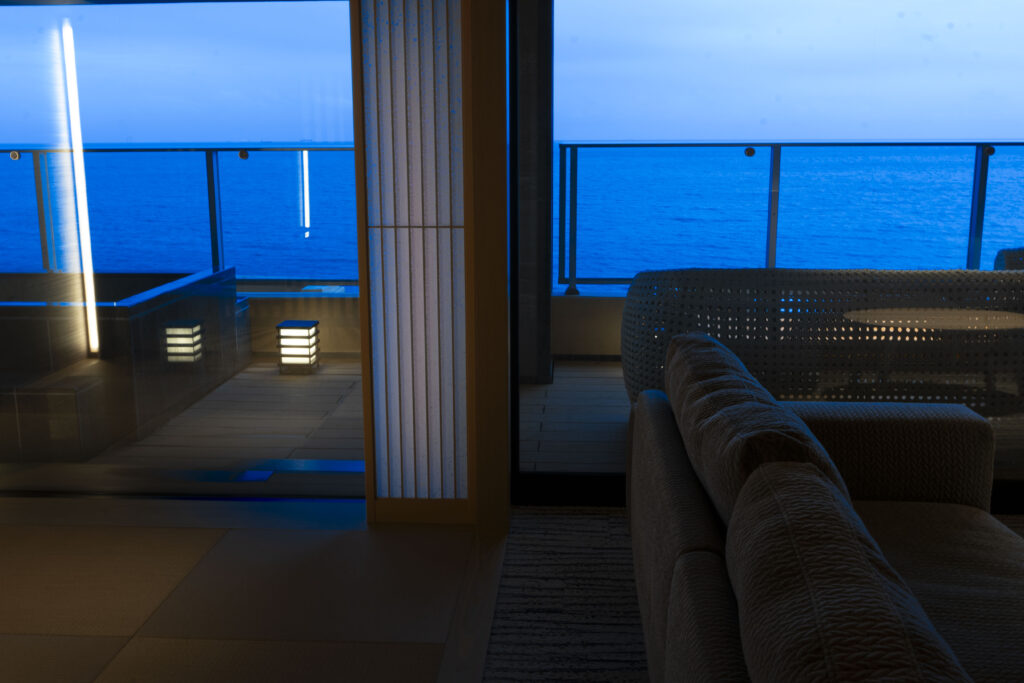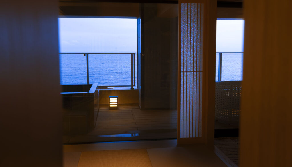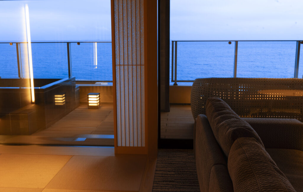 どの露天風呂付のお部屋よりもぐん、と広いテラス。