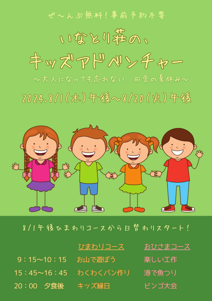 2024年夏の、キッズアドベンチャーとイベントご案内