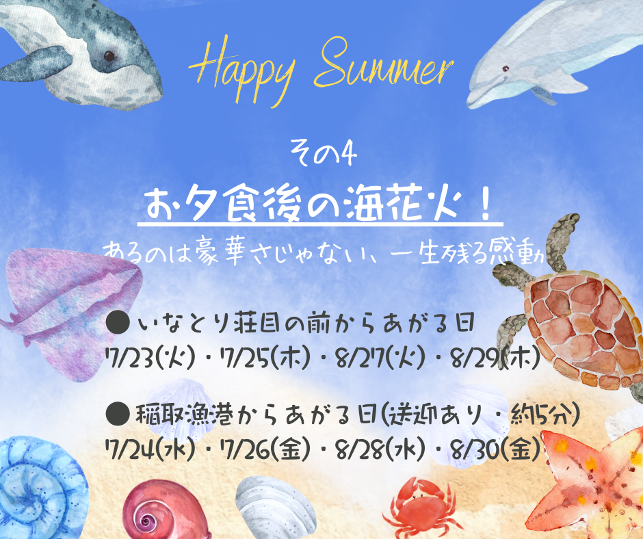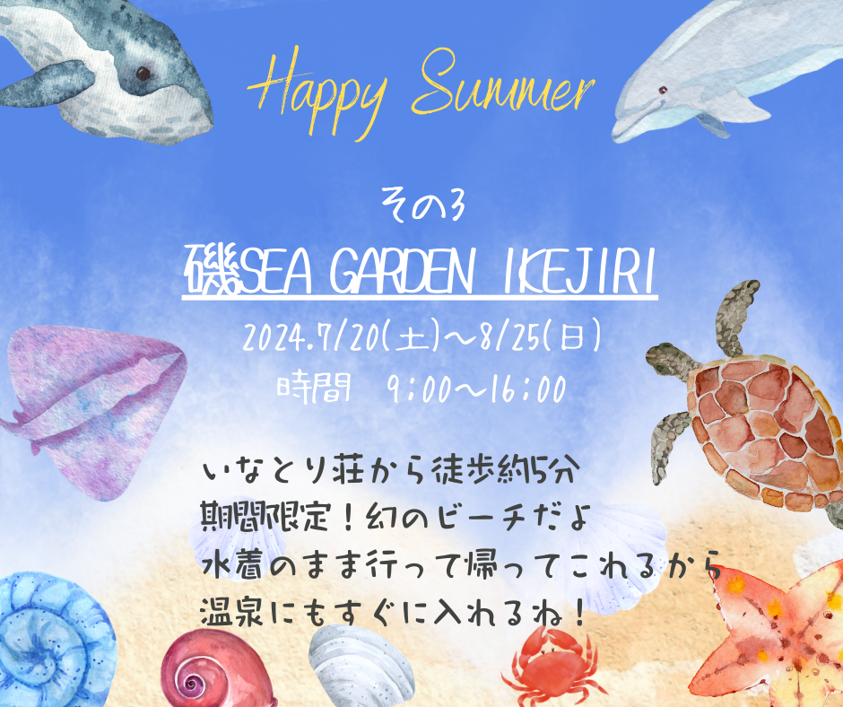 いなとり荘から徒歩約5分のところにある、夏だけOPENする幻のビーチ。