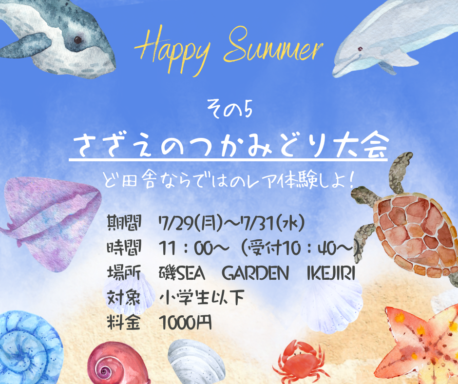自分でとったさざえを焼いて食べられるので 大人になっても忘れない思い出になるんじゃないかな♪