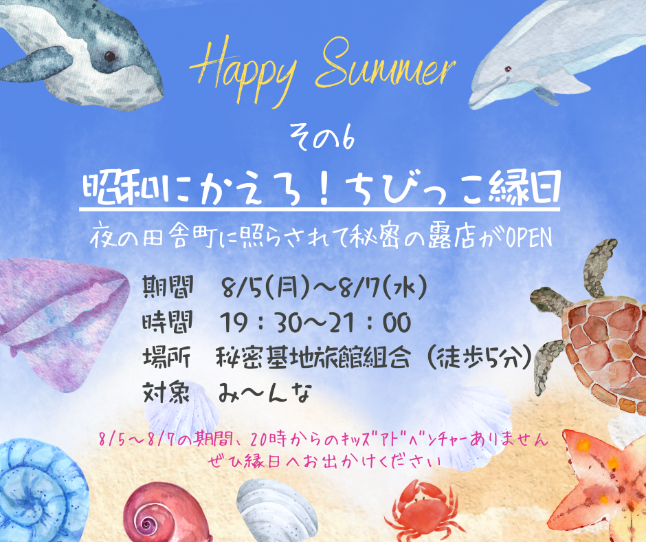 この8/5~8/7は、いなとり荘のキッズアドベンチャー夜の部はなく、