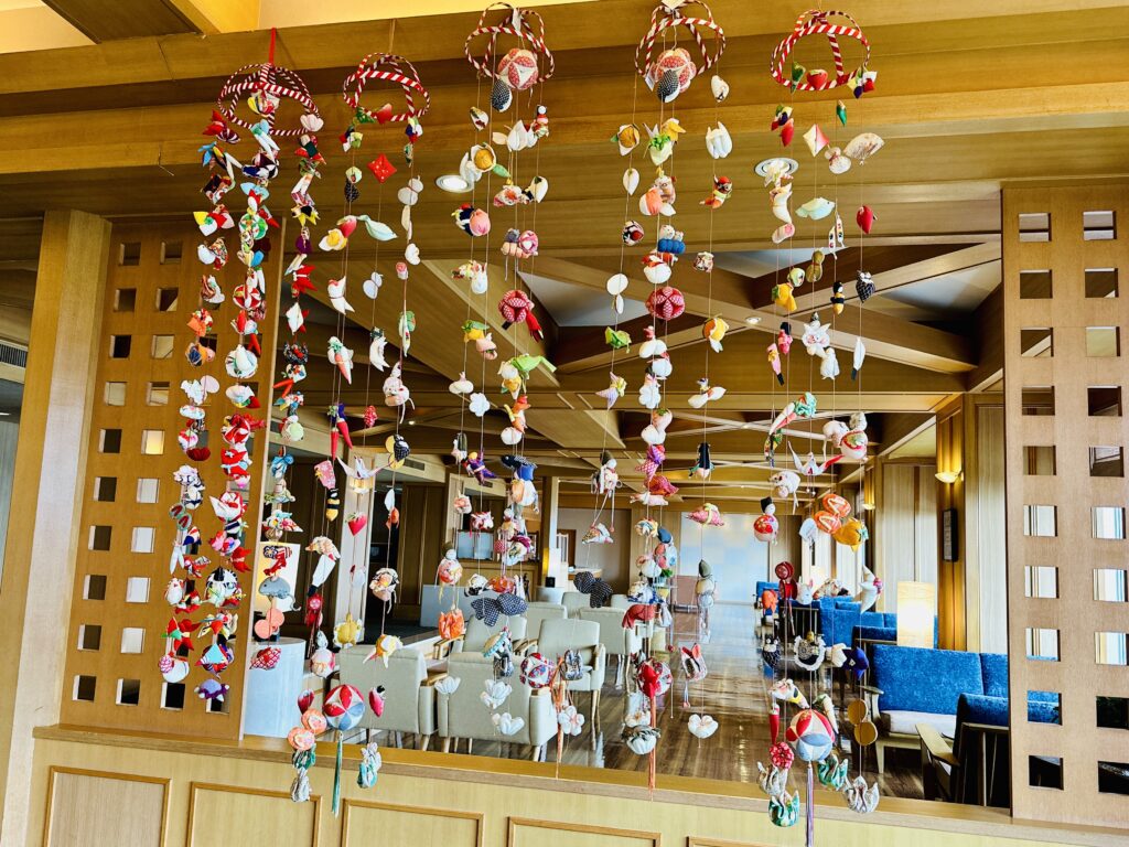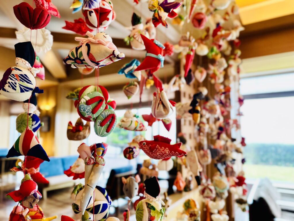 館内ロビーのつるし飾りが、雛のつるし飾りから端午の節句のつるし飾りへとチェンジしました♪