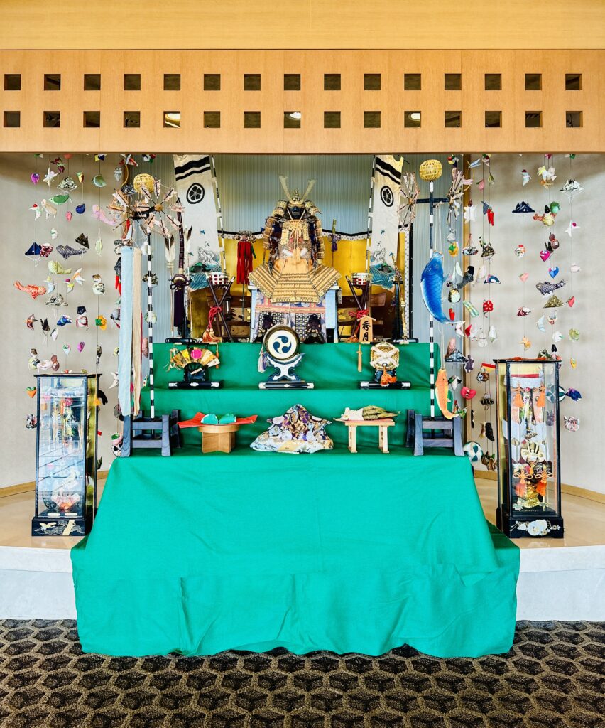 ロビー中央に飾っていたお雛様も、5月人形・端午の節句の飾りへとチェンジ。