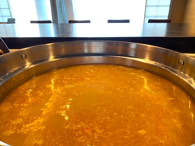 大きな鍋で、温めながらお客様がお越しになるのをお待ちしています。