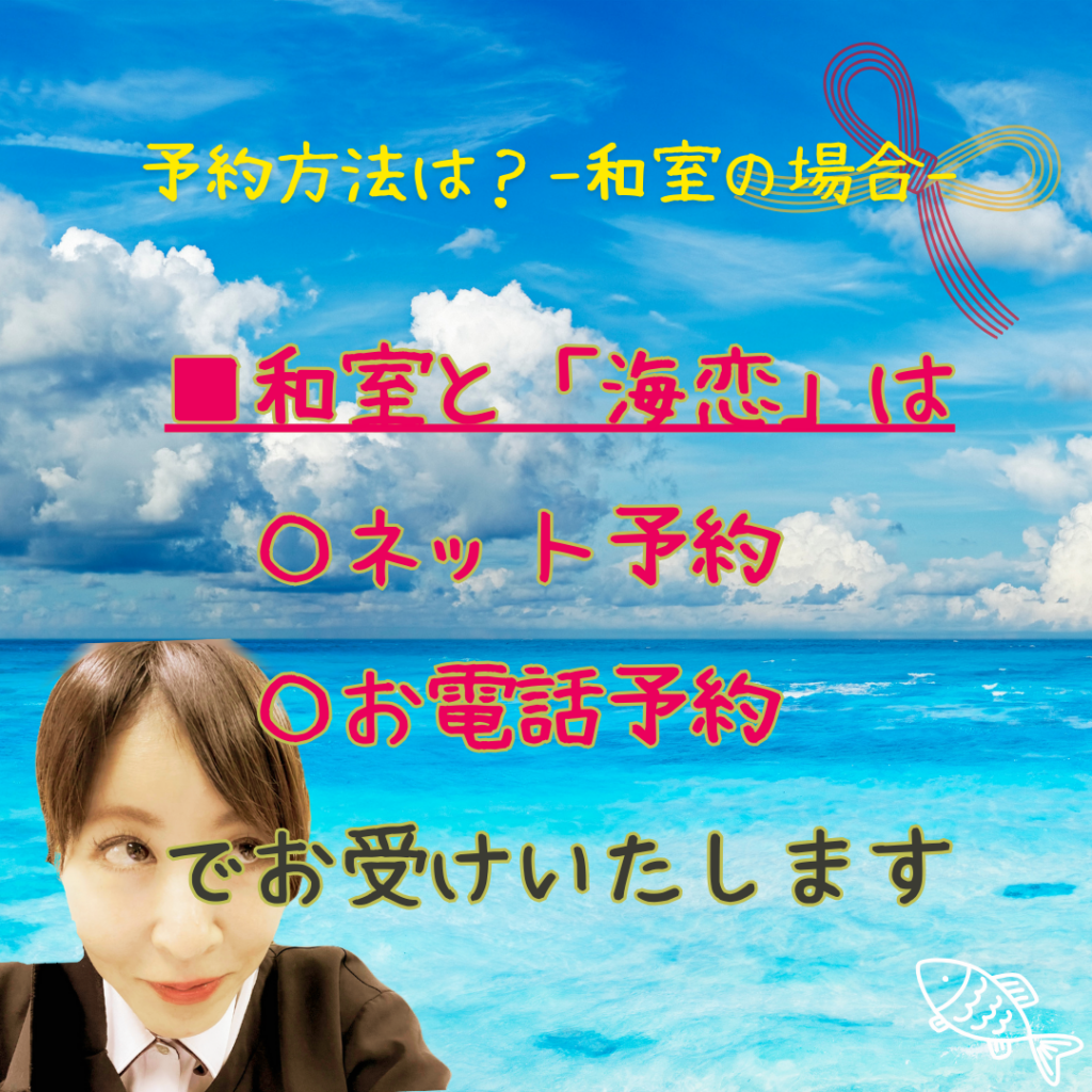 お電話でお受けするのは、和室と「海恋(かれん)」というお部屋のみ。