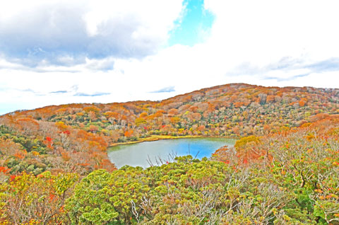 標高によって徐々に色付きが変わる紅葉を楽しむことができます。